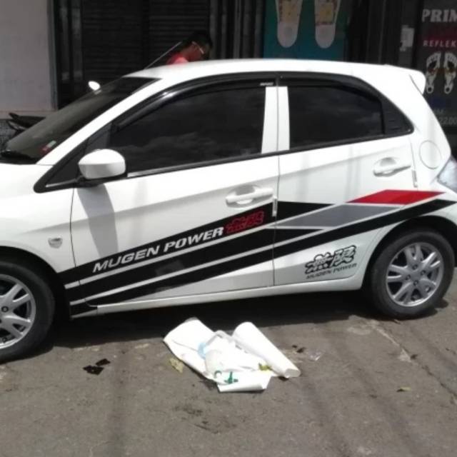 Pasang cutting sticker elegan di mobil brio.